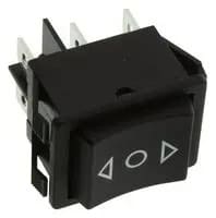 E-Switch R5 Series, Rocker Switch, DPDT, 10A at 250V, 15A at 125V, (ON) – OFF – (ON) Black with Indicator Legends, Non-Illuminated, 30,000 Cycle Life, -20°C + 55°C, Panel Mount, Panel Cutout: 30mm x 22.2mm, 1/4″ Quick Connect Terminals