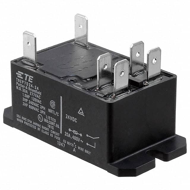 TE Connectivity T92 Series, General Purpose Power Relay, 24VDC, 70.8mA, 350 Ohms, 2 Form A (DPST-NO) 30A, Switching Voltage: 600VAC Max, Load – Max Switching: 18,000VA, Operate / Release Voltage: 18VDC / 2.4VDC, Panel Flange Mount, Quick Connect – 0.250″ (6.3mm) Terminals, Class F Coil Insulation